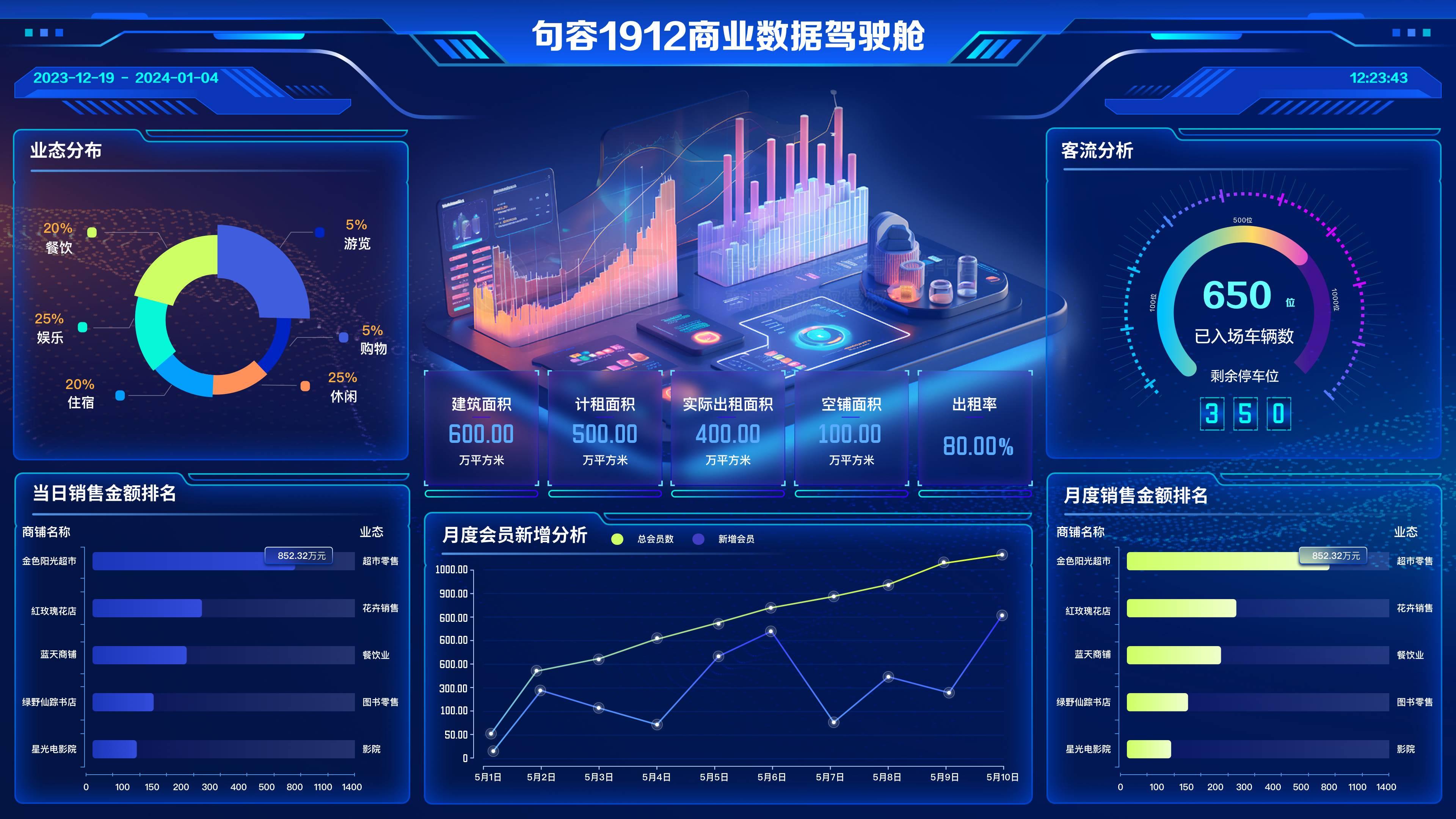 银商大脑BI:句容1912商圈数据驾驶舱